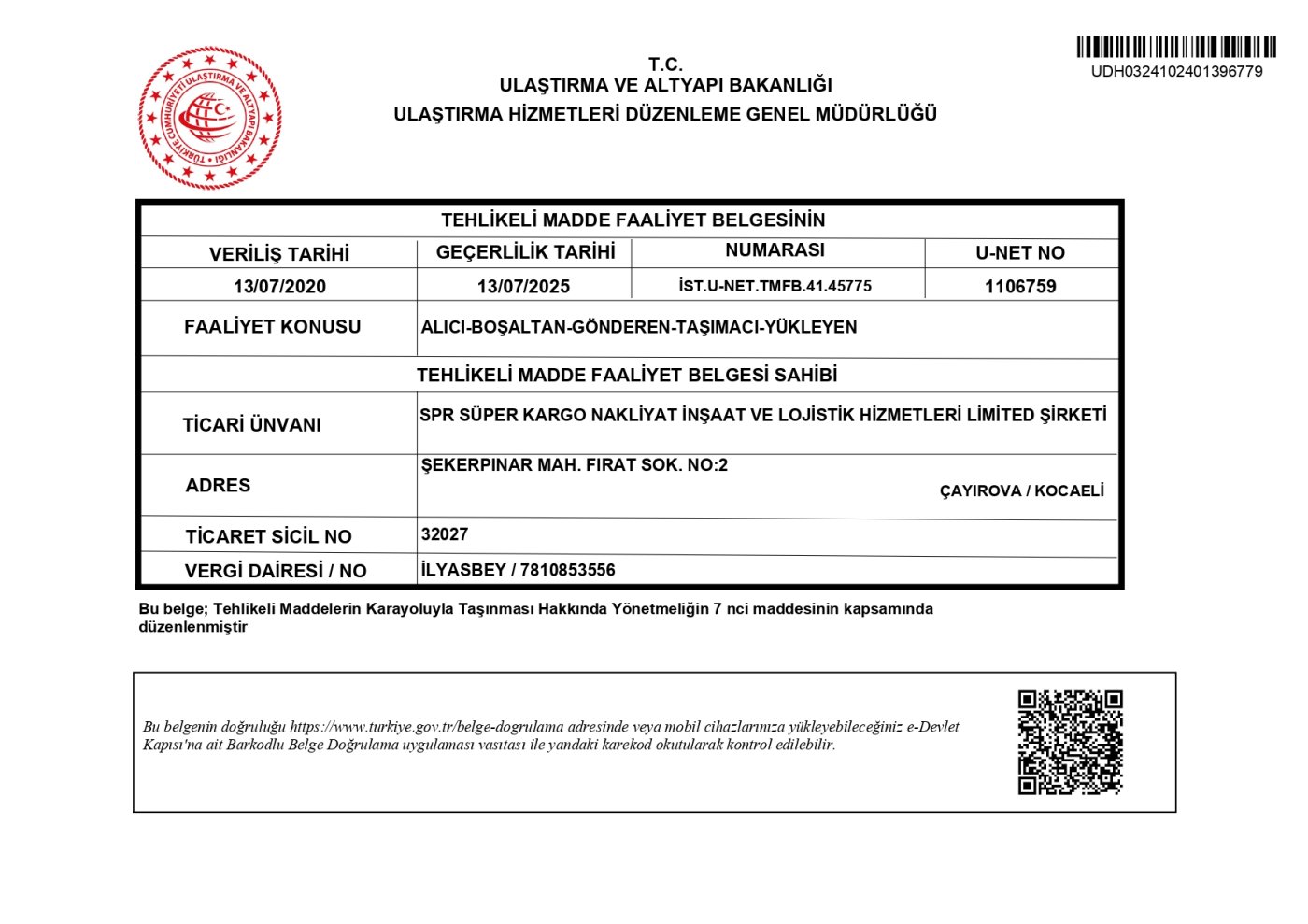 TEHLİKELİ MADDE FAALİYET BELGESİ